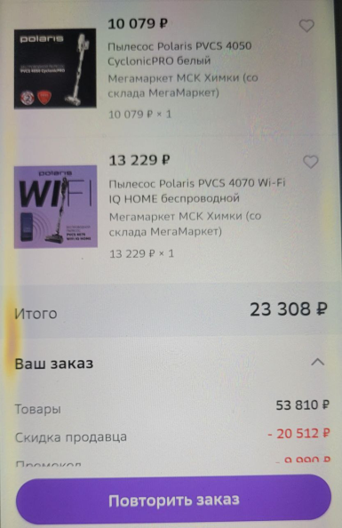 У одного холодильника применяется промокод, в моем регионе
