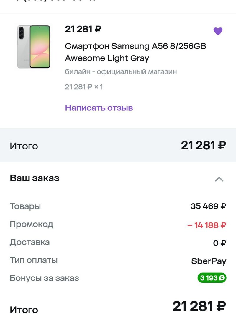 Samsung A56 8/256 со всеми баллами получился за 17500 рублей, считаю вполне неплохо