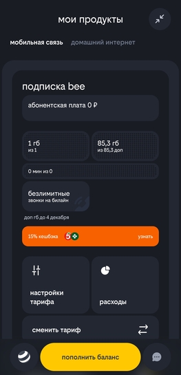 тариф был бесплатный с 1гб трафика (подписка БИ там какая-то новая - 0 минут и 0 смс, 1гб)