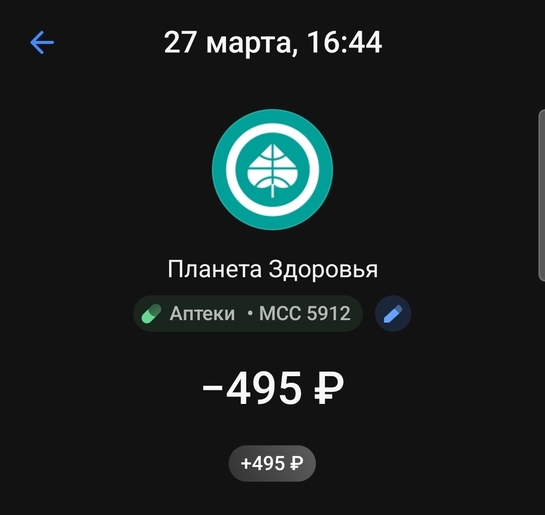 Салфетки покупал вчера, без чека прилетел кэшбэк.