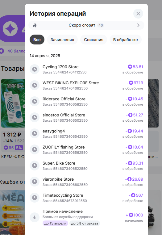 14 числа закинули 1000 баллов на акк оплатить можно 5% от заказа как говориться мелочь а приятно, проверяйте может и вам чутка повезло, сгорят уже 15 числа.