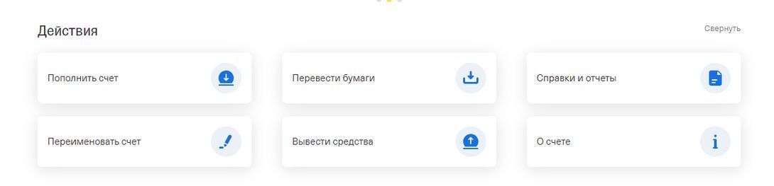 На сайте: Инвестиции->портфель. Затем слева в брокерских счетах нажать на свой счёт, развернуть блок "действия"