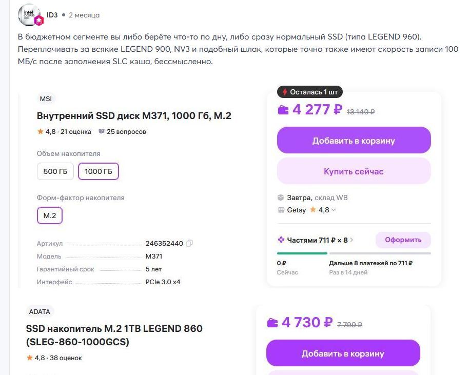 В прошлом году за такую цену можно было взять 960 на 2 терабайта