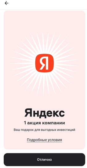 п.с. жлобы тбанка подарили 0.25 акции яндекса, впервые такое вижу чтобы меньше 1шт, и условия там дичь - 20к держать месяц