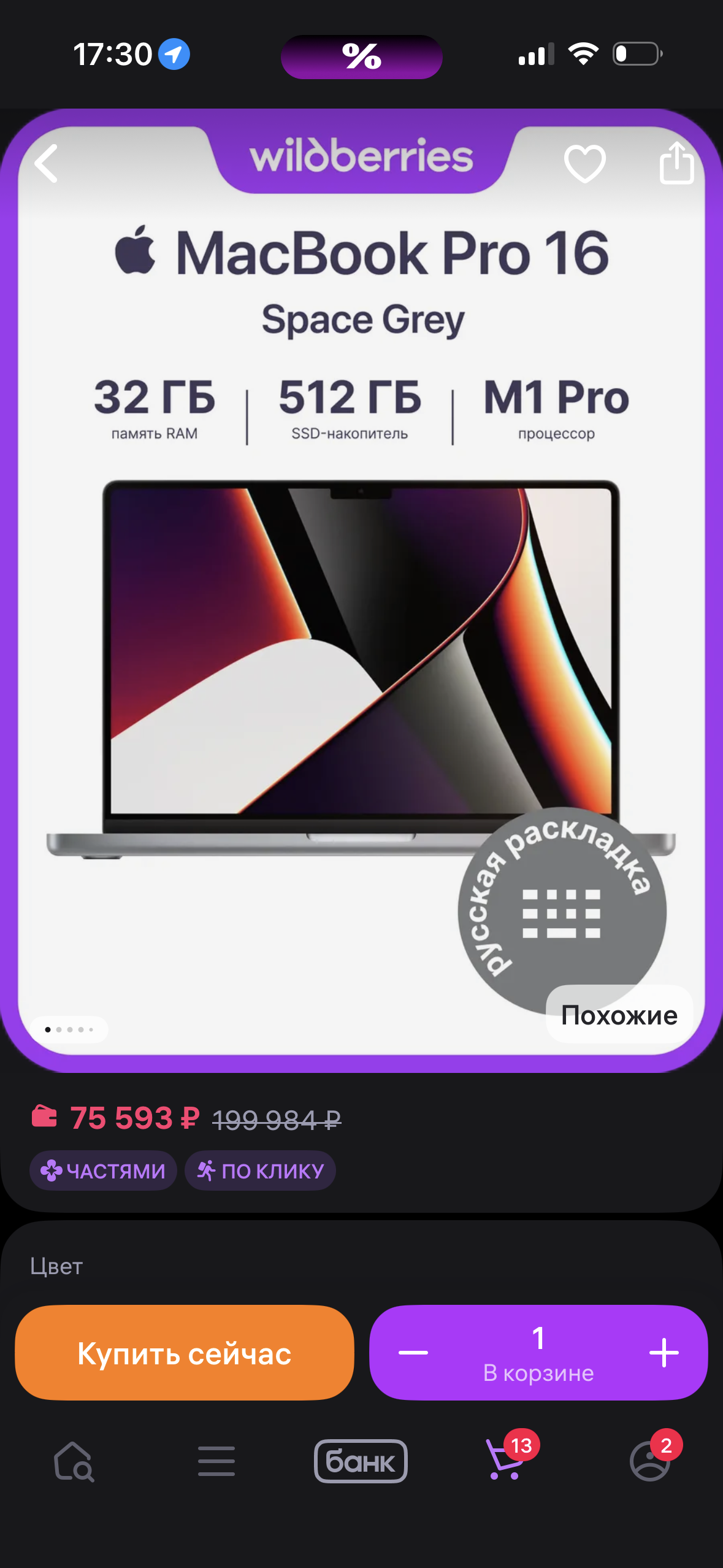 Рядом был такой же лот от вб (32/512/16’/space gray) за 73.8
