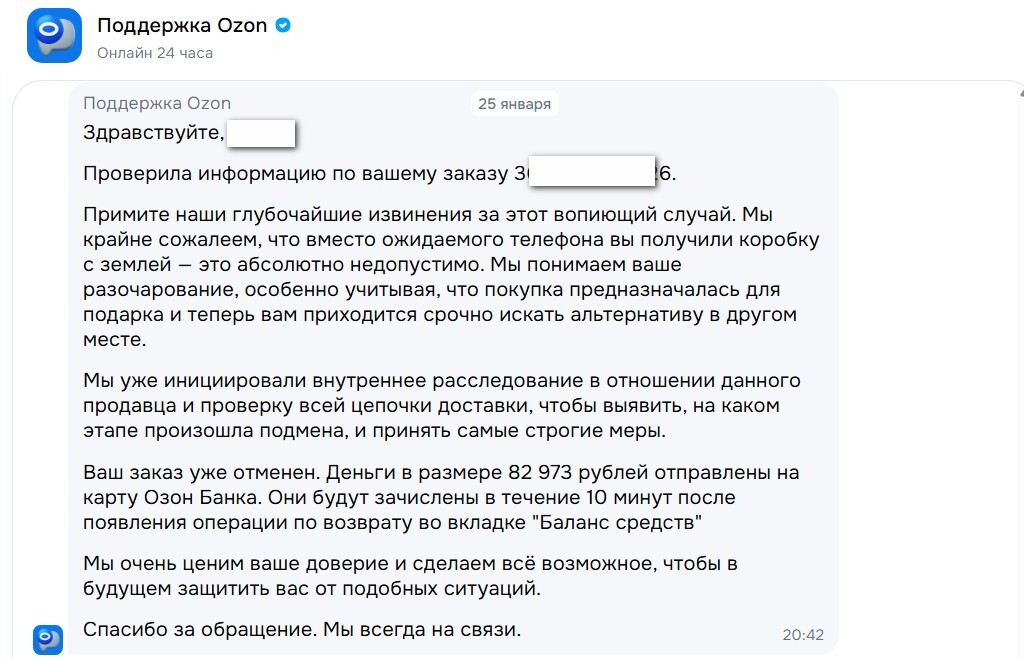 только если кто то планирует компенсация получить от озона и накатать жалобу. Я так буду делать