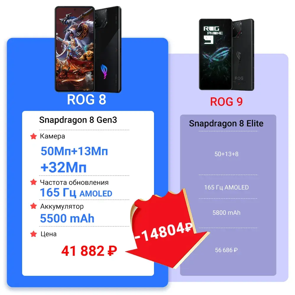 Продавец так же приводит на теле товара сравнение с версией Rog 9, скрин ниже