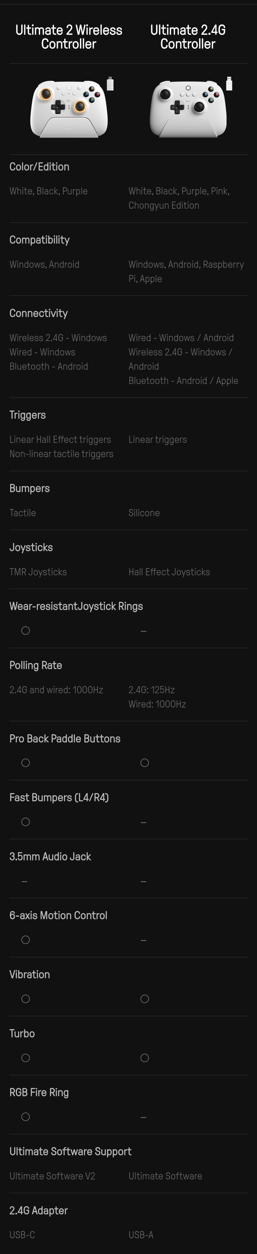 Всё это не имеет никакого значения. На джойстиках самое главное это стики, а точнее отсутствие мертвых зон.