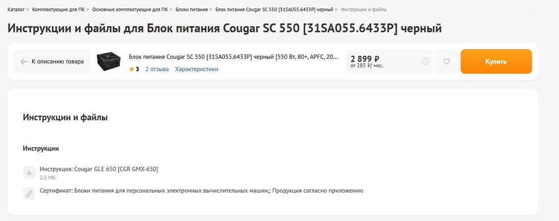 Отзывы покупателей о Блок питания Cougar SC 550 [31SA055.6433P] черный | 5454624. Интернет-магазин DNS.