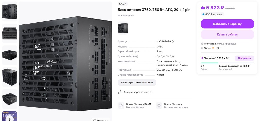 Стоит год sama xp1200 v3, АТХ 3.0 (обратите внимание у моего один 600вт, ниже кто-то приводит скрины с 2я разъёмами). Забрал за 10.5к на озоне. Начинка не японские кондеры, вижу везде пишут по разному но думаю в моем случае на входном напряжении стоят teapo. Может важно кому 600вт кабель пришел с 4пин управлением (были отзывы что приходил с 2пин). У меня система на 300вт, так что за все время кулеры включались только при старте и потом выключались. В Ютубе есть часовой видос от каких то португальцев. Сайнбетик сували его в В категорию типа не плохой но не топ. По платине он не проходит 50% - 93.5% при необходимых 94%, 10 20 100% норм. 600вт после теста не сгорел) и скачки выдерживает (fcpowerup). Ссылка на китайский обзор https://www.fcpowerup.com/sama-x...0/. gelid тоже обозрел https://ru.gecid.com/power/sama_xp1...3/. Самый прикол покупал киловатт а пришел 1200вт который мне ну вообще не нужен :smile: (специально для пеппечан сфоткал блок)