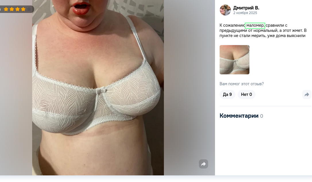 Никогда не понимал зачем они фоткаются в белье для отзыва... Это как свой комп фоткать, когда оперативки плашку берёшь ?