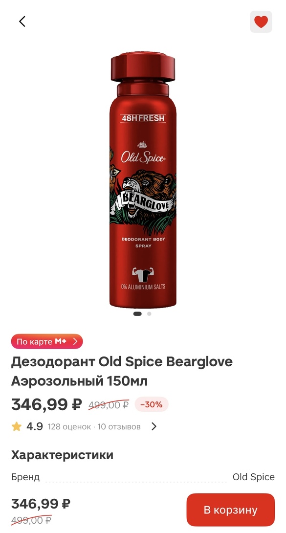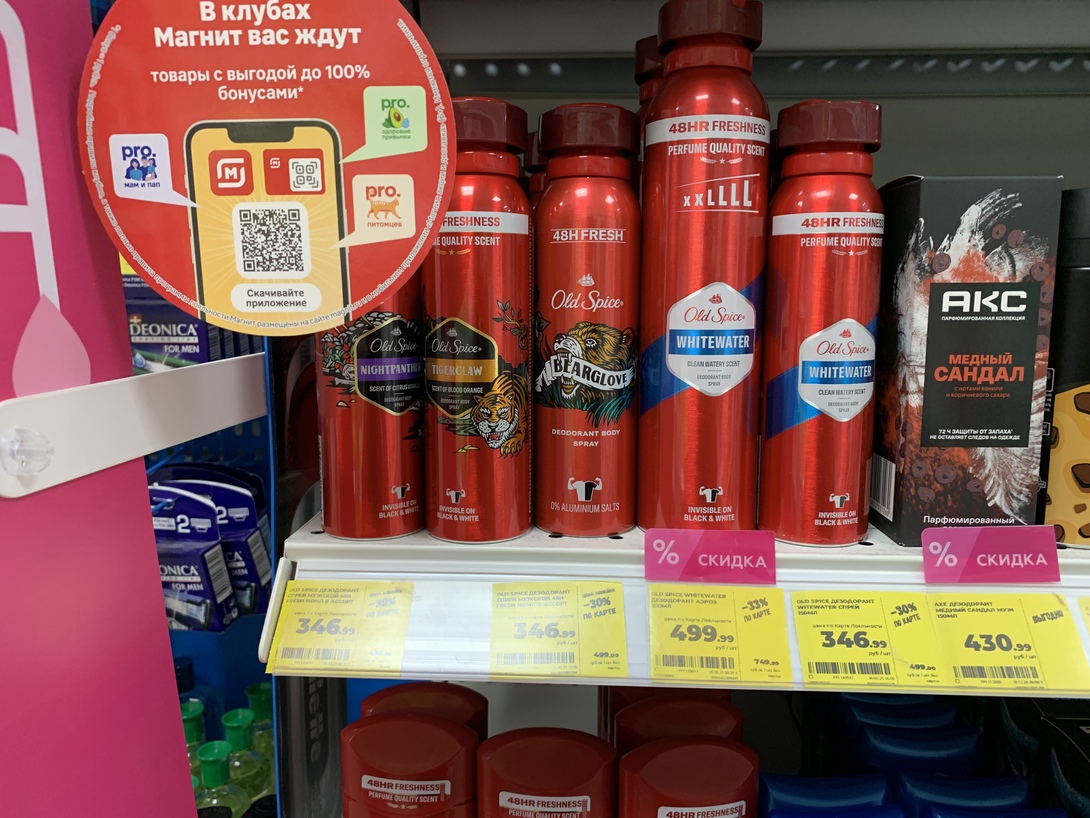 В Магнит Косметик цена дезодоранта составляет 347 рублей и даже с субботней скидкой в 20% он будет стоить дороже: 278 рублей: