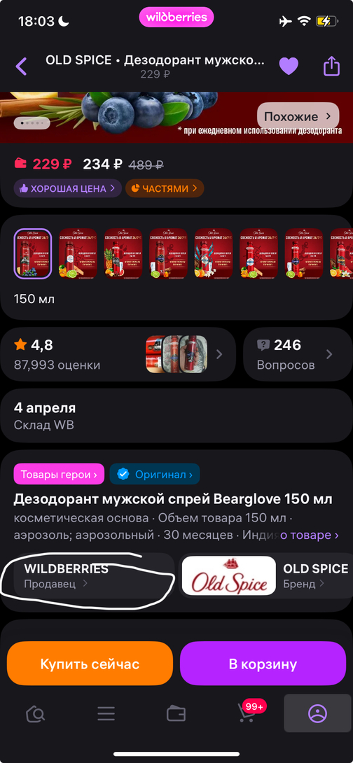 На Ozon и Wildberries он стоит одинаково: 234 рубля.