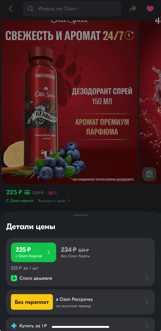Но на Ozon он будет дешевле на 9 рублей, если оплатить заказ картой Ozon, но его необходимо оплачивать сразу! : https://ozon.ru/t/OqycXSF