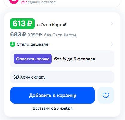 А почему у меня по карте Озон цена выше, чем у остальных? Потому что 10 заказов в пути и процент выкупа 100?