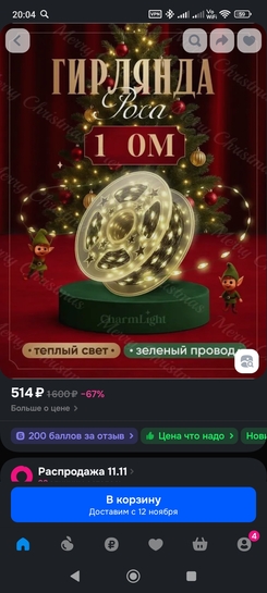 Электрогирлянда Роса 100м (из-за рубежа) за приятную цену + так же начисляют 200 баллов за отзыв - https://www.ozon.ru/product...