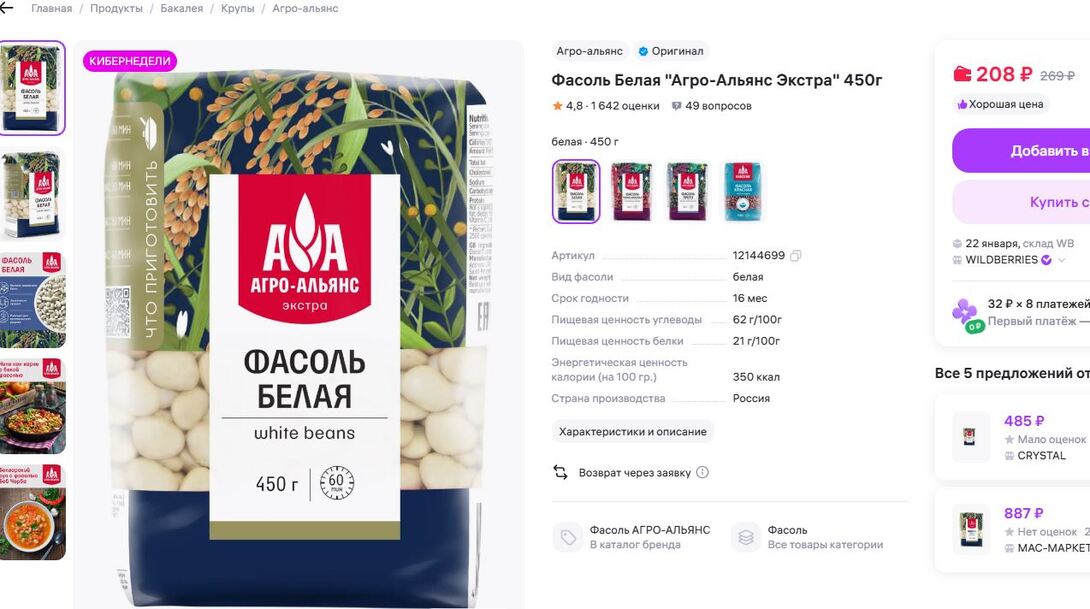 Домашняя страница/Фасоль белая 4 уп. х 450 г (c Ozon картой)
