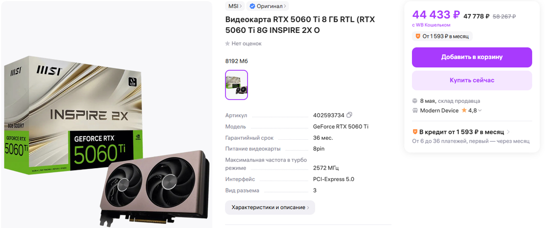 Дорохо для затычки на 8gb) пока посижу на 2060s может летом интел собьёт цену своей b770 на 5060ti 16gb