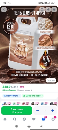 Только что взял гель 2 + 1 ополаскиватель вышло 745р, со вчерашнего дня торгуют со скидкой и баллами, посмотрим что за зверь.