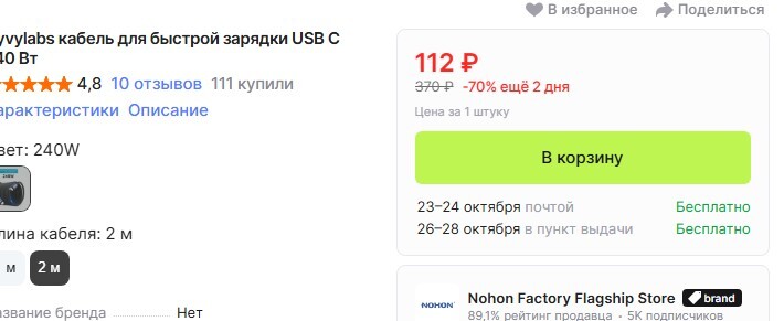 честно говоря и 136р за 240w кабель это очень неплохо.
