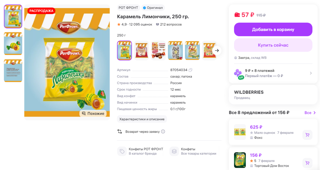 Домашняя страница/Карамель РОТ ФРОНТ Лимончики, 250 грамм (с ВБ-кошельком)