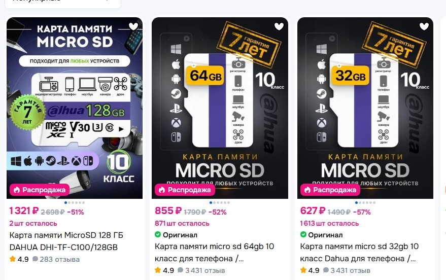 Карты памяти стоят в ответственных местах (в видеорегистраторе, например). Лучше заплатить больше, но купить проверенную карту хорошего бренда.
