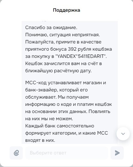 В общем, после нескольких дней боёв мне кэшбэк отклонили. Сказали, что на Яндекс еде заказ тоже должен быть первым.