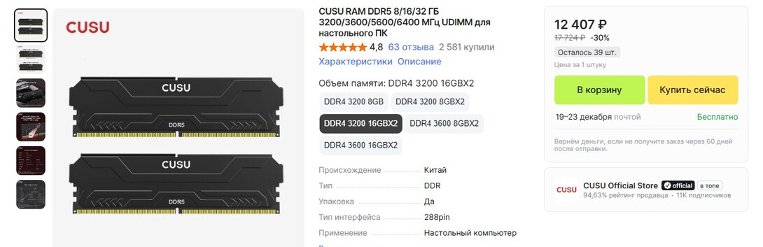 Покупал ддр 5 тайм групп на 6000 32гб.. За 6500р и ддр 4 16гб 3600 за 1.5к 2года назад через мегамаркет...