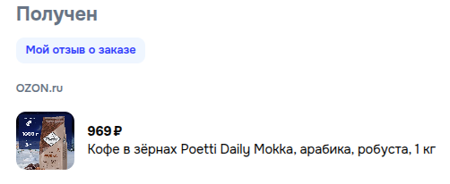 Пью его сейчас после предновогодней скидки на «Озоне». Нормальный кофе, обжарка выше средней. Аромат и вкус нормальные, без посторонних запахов и привкусов, зёрна цельные, однородные, без мусора и осколков. Скажем так, кофе не шедевральный, но вполне пригодный для употребления. Готовлю в гейзерной кофеварке 150 мл, иногда добавляю взбитое и подогретое капучинатором молоко.