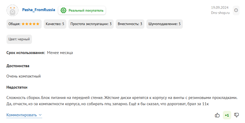Судя по отзывам добротный небольшой корпус, но позволяющий установить видеокарту длиной до 338мм и ещё возможность размещения СЖО 360 в верхней части корпуса.
