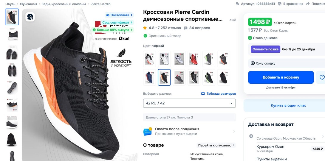 По скидке 4 расцветки и 2 варианта стопы - для широкой(E) и стандартной(D). Размеры в наличии почти все и зависят от цвета и стопы.