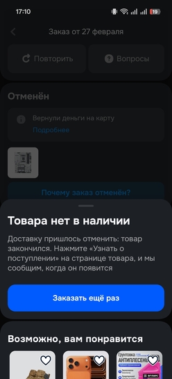 Озон отменил заказ сославшись на то, что товар закончился, когда товар есть в наличии.