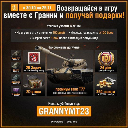 Upd. Ладно, я тут выяснил, что бои в Хэллоуинском режиме не идут в зачёт и не обновляют дату последнего боя. Так что можно играть в этот режим, зафармить экипаж, а потом через несколько дней сыграть один бой в рандоме и получить танк (если это сработает).
