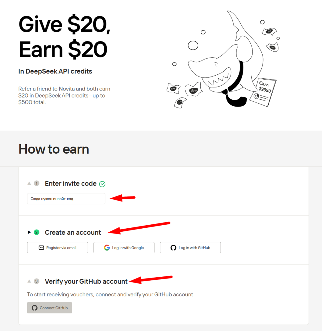 ╚ Как получить бесплатно: 20$ для DeepSeek API (R1/V3) и других ИИ?
