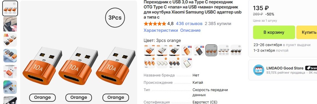 Ноунейм переходник, который стоит 80р за 222р. Надёжный план как швейцарские часы.