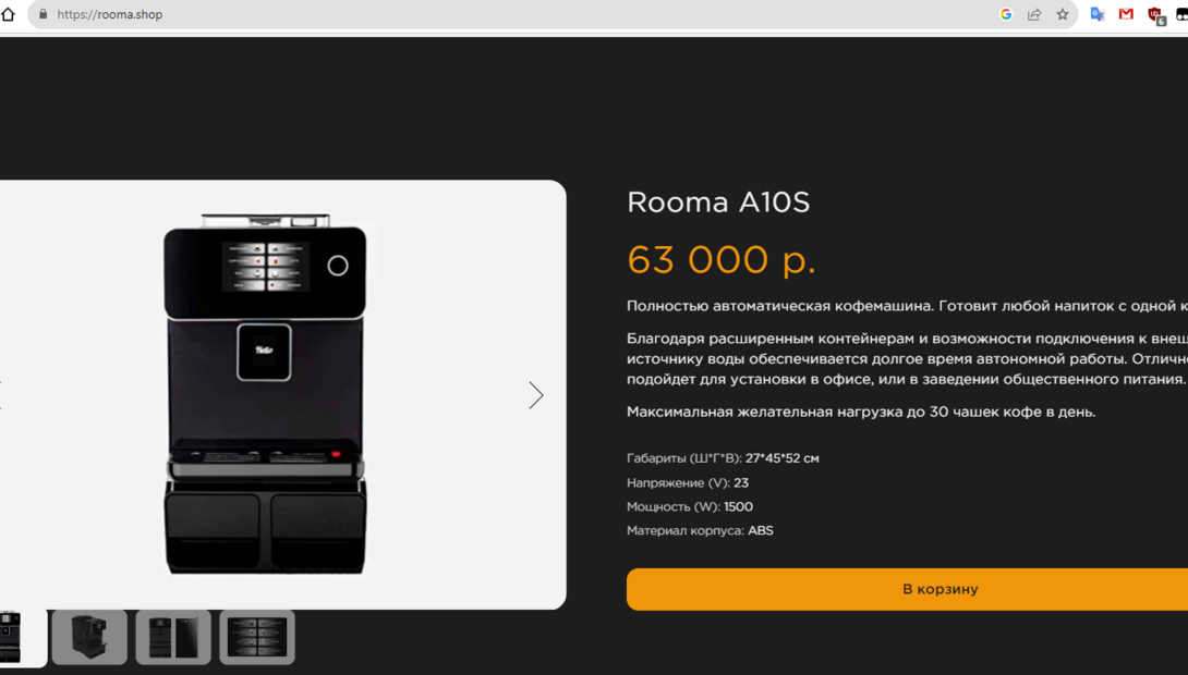 Описание продавца  "Раскрыть яркий вкус кофейных зерен поможет профессиональная встроенная кофемолка конической формы с заусенцами из закаленной стали.Процесс приготовления свежего и насыщенного кофе занимает меньше времени, благодаря мощным итальянским насосам.Сенсорный TFT-дисплей делает управление машиной простым и комфортным, а усовершенствованная система управления делает процесс приготовления интуитивно понятным и удобным. Rooma A10 позволяет вам установить все необходимые параметры для получения идеального напитка - 5 температур заваривания, 5 степеней помола и 5 уровней концентрации кофе, а также множество других функций, включая предварительное увлажнение."