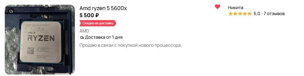 Брал у него пару недель назад, за 6500 норм замена для r5 1600. Правда офигел в пункте выдачи когда девочка блистер с процом придавила рукой к столу