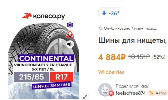 Ребят, там на WB скидка, а может на Яндексе, но скидка точно где-то есть. Почему? Наверное потому что ее не может не быть. Берите Пирелли, ищите Континенталь, двигайтесь в общем