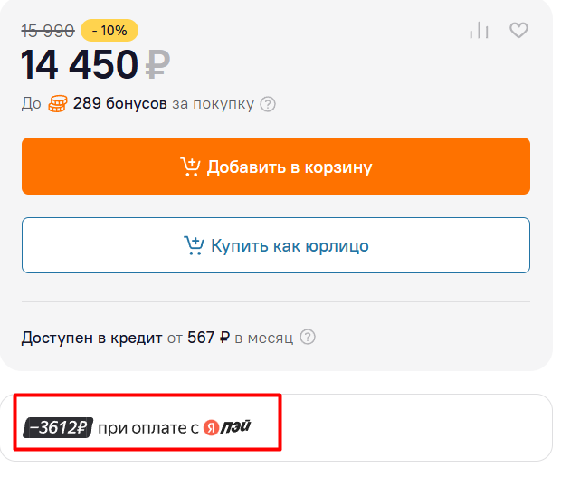 Как-то можно совместить с бонусами? Говорят насыпали то ли Ситилинк, то ли ЯМ. А так после перехода в Ситилинк показывает до 20% скидку на странице за ЯПэй