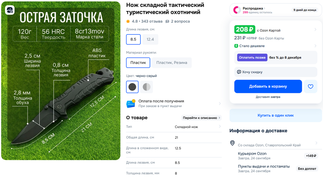 РЕЙТИНГ НОЖА:  4.7 • 9 472 отзыва            ДОСТАВКА: завтра.