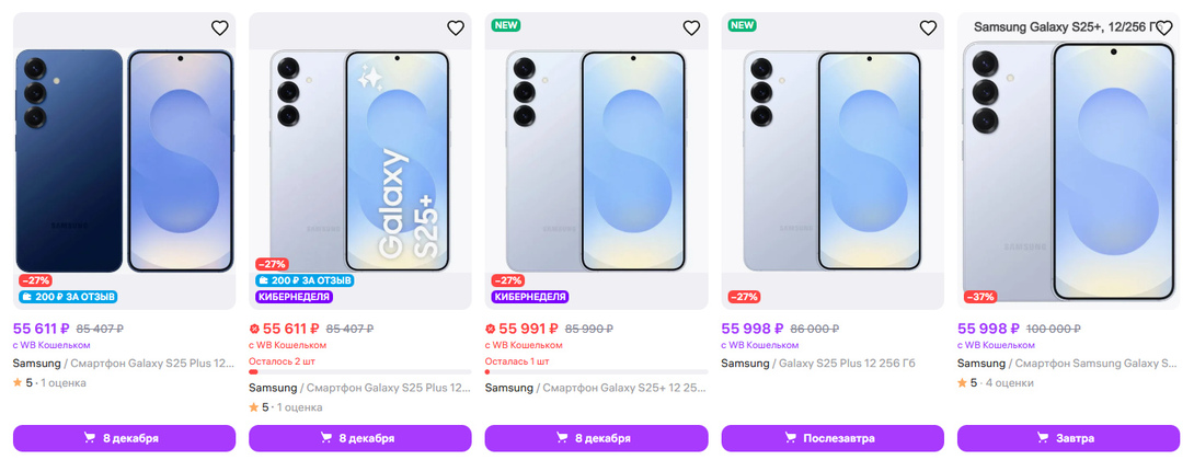 S25 Plus. Хорошая цена. Четыре цвета: салатовый, светло-синий, серебристый, темно-синий по одинаковой цене. Пошлина 6392₽. Цена с пошлиной 61051₽