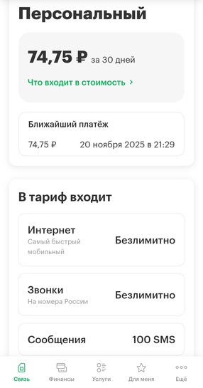 Можно сделать этот тариф за 74,75 рубля в месяц