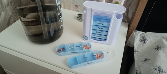 Заказала таблетницу, удобно хранить различные витаминки, у нас в семье у всех свои витамины, добавки. Удобно на 3 недели вперёд можно разложить. Каждая ячейка открывается отдельно, всё подписано.