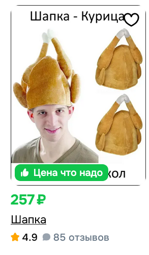 Курица-шапка реально странная, у неё вход для головы с другой стороны.