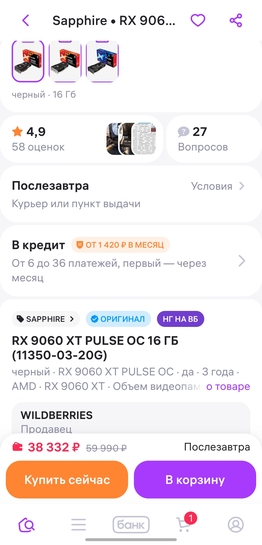 Ещё вчера за 45 были 9060xt 16 nitro на wb, хорошо что есть pulse 16 за 40, пока что.