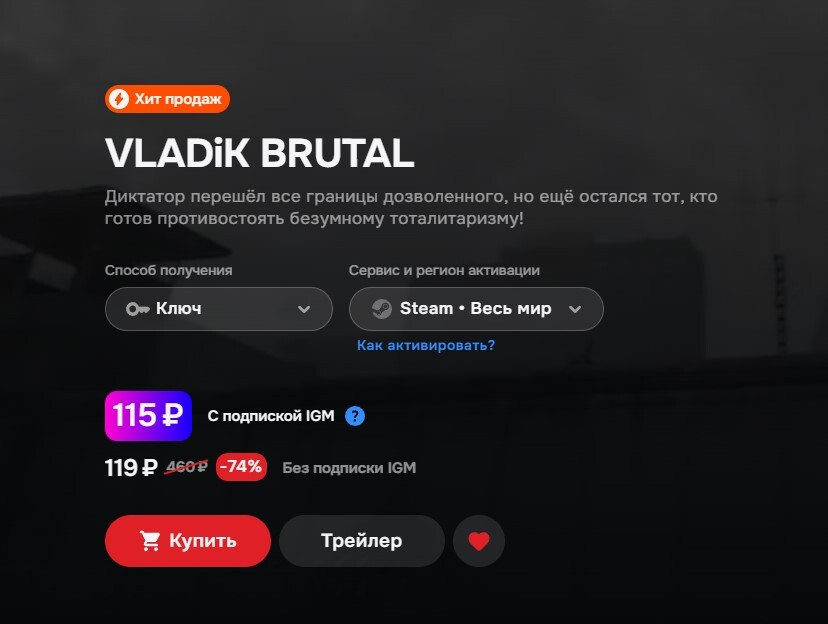 Непомню почём брал в Стиме. Игра зашла отлично. Просто вот рекомендую. Из наших продуктов ещё смело рекомендую