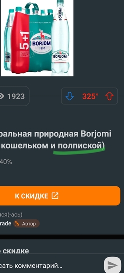 Сурероверпрайс, недавно было 6 баклашек нарзана за 180₽, вот топ скидка.
