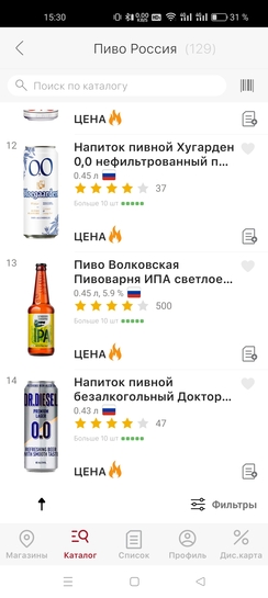 у меня алкоголь вообще не показывает в приложении - только безалкогольное пиво и энергетики