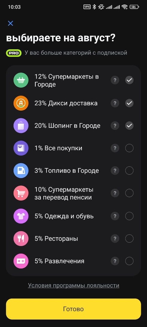 Какую же срань на август тинек предложил. 6 "категорий" из 9 - рекламные предложения конкретных мест. +топливо аж 3% (которые тупо перекрывают комиссию сервиса), супермаркеты город и 1% на все покупки. Кажется, тинек на месяц отложить можно.