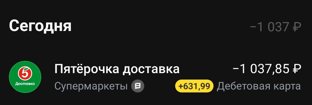 я экономщик 80 уровня. сделал заказ в обновленном приложении Пятерочки. оплатил картой Т-банка. покупка вышла на 1200руб.